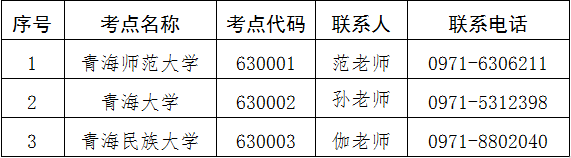 我省设置青海大学、beat365、青海民族大学三个考点。考生可选择任一考点报考,每次考试每名考生须在同一个考点报考,最多可报考3个科目。考生不得在同次考试(包括省内、省外考点)中重复报考同一科目,重复报考者将按违规处理。