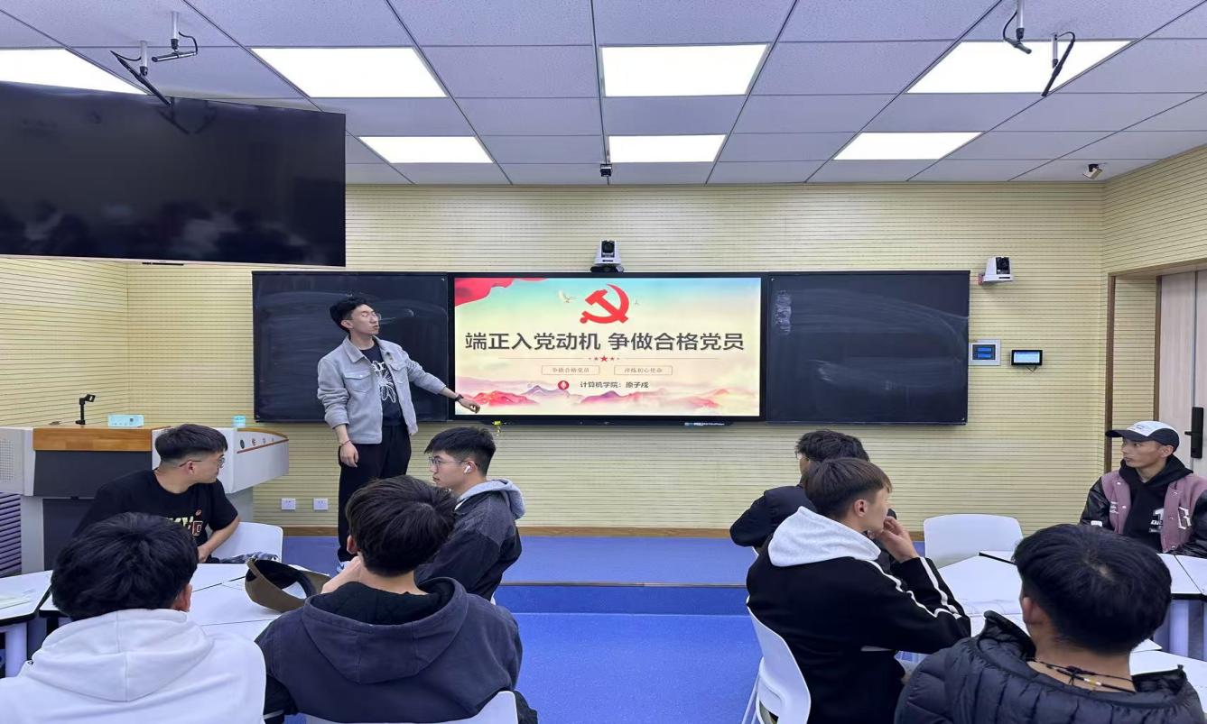 党课从“什么是正确的入党动机”“端正入党动机的重要意义”“如何端正入党动机”“提高认识,以实际行动入党”四个维度展开讲解。通过讲述张桂梅、黄大年等优秀共产党员的先进事迹,使团员青年深刻认识到入党不是获取光环的“敲门砖”,而是选择一份需要终身践行的信仰承诺,提醒青年员工要警惕功利化倾向,在专业学习、志愿服务中锤炼党性修养。同时围绕“新时代青年党员的使命担当”,结合计算机学科特色,鼓励同学们将个人成长融入国家发展,既要成为代码世界的开拓者,更要做好红色基因的传承者,用算法解决社会痛点,以技术赋能民生福祉。
