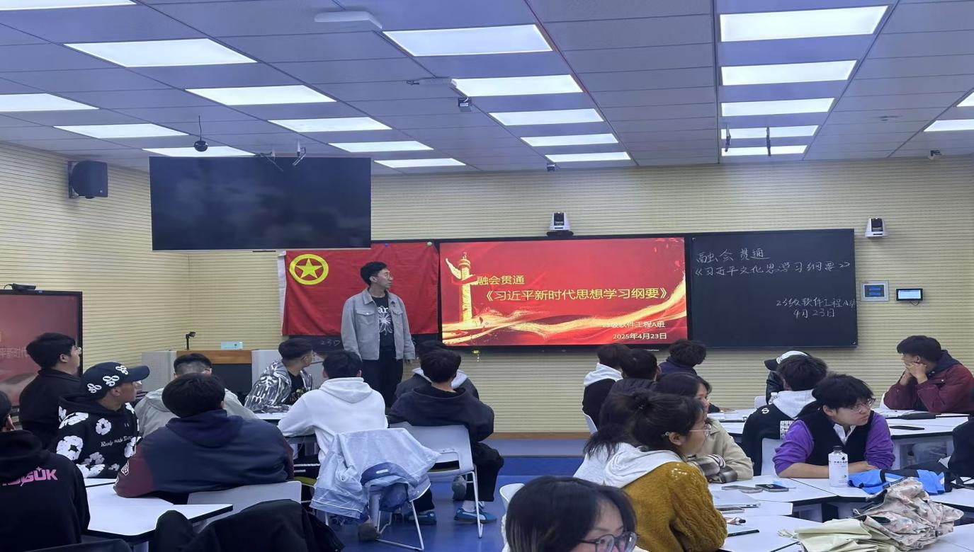 团课伊始,原子戌老师详细介绍了《习近平文化思想学习纲要》、《中国共产主义青年团纪律处分条例(试行)》的重要意义与核心内容,结合丰富的案例与生动的故事,深入浅出地解读了习近平文化思想中的关键要点。他指出,在如今信息多元化的时代,青年团员更要保持敏锐的政治洞察力,坚定地站在党和人民的立场上,传播正能量。最后同学们从自身的学习、生活出发,围绕“如何在日常中践行习近平文化思想”“如何将团纪要求内化于心、外化于行”展开了热烈讨论,现场思维碰撞,金句频出。