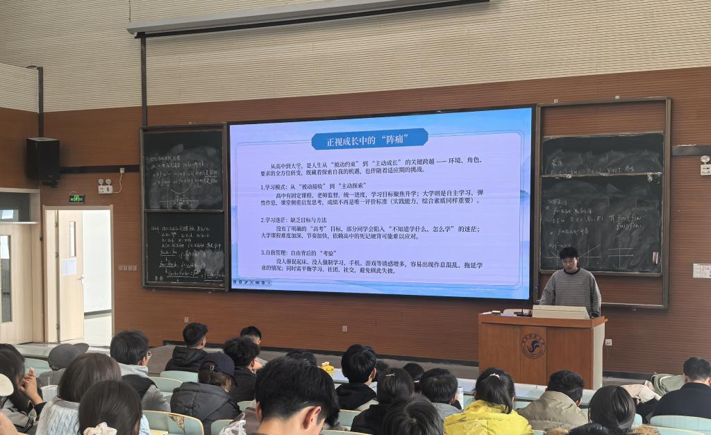 2024-2025年度国奖获得者及2022级推免生高向阳、张子浩和李俊鹏等三位同学围绕“树立正确三观”、“人生规划”、“学习方法与技巧”、“社会实践”、“老员工存之道”等主题进行分享。大一阶段应当建立积极的价值观和心态,踏实学习每一门课程;并坚持利用寒暑假参加志愿活动以提升组织协调和人际交往能力;其次积极参与各类专业竞赛和科研项目,在实践中提高专业技能;最后重视日常英语学习,做好长远的学业规划,不断尝试突破自我。会上,同学们针对目前学习、生活中出现的问题与困惑进行了互动交流。