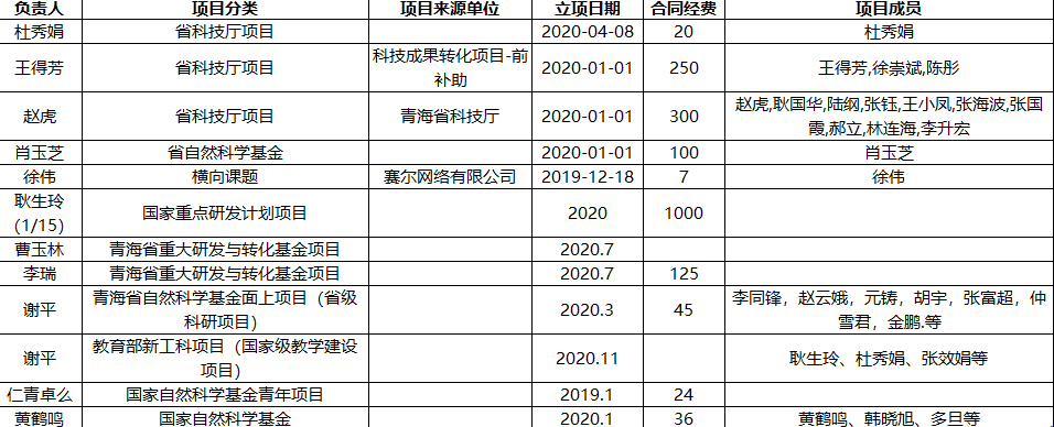 2020年立项科研项目