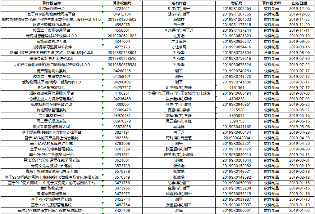 2019年著作权与专利成果