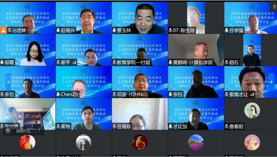 2022年9月25日,计算机学科入选青海人才计划工作启动会暨省部共建藏语智能信息处理及应用国家重点实验室学术研讨会通过线上方式举行,参与本次会议的与会专家有中国标准化研究院陈玉忠教授、北京信息科技大学吕学强教授、北京师范大学邬霞教授、陕西师范大学张钰副教授等,实验室全体科研人员和公司教师等100多人参加了此次学术研讨会。