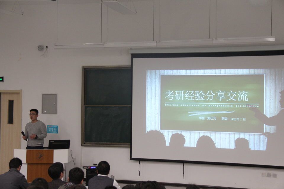 在会上,首先由韩维良书记做动员报告,他通过身边的现实问题和个人经历说明考研的必要性,他强调“考研不是为了镀金,而是为了砺剑。”学如逆水行舟,不进则退,但只要坚持,必定会海阔天空。随后才让加副经理从考研数据对比、专业设置、考试科目的复习、信息收集等几个方面做考研专业辅导。为了更好地让同学们了解相关信息,会议还专门安排了14级已经通过考研笔试的刘仕元同学分享了自己的考研经历。
