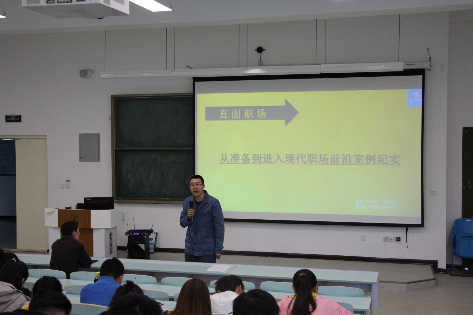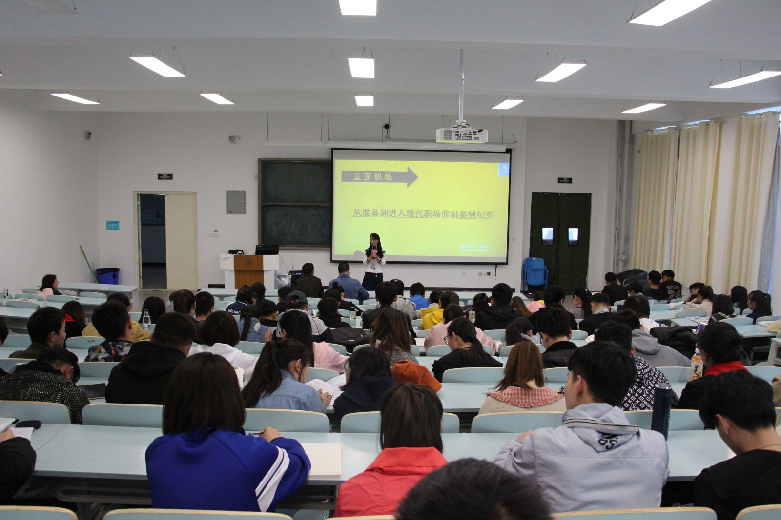 5月8日晚,beat365在线官网入口学术大讲堂在西二楼219教室举办,本次大讲堂以“直面职场”为主题,由中兴通讯公司职业素质拓展教师胡琼瑛主讲。beat365在线官网入口书记韩维良、中兴通讯公司副经理华春雷出席,辅导员班主任及15级全体员工参加。