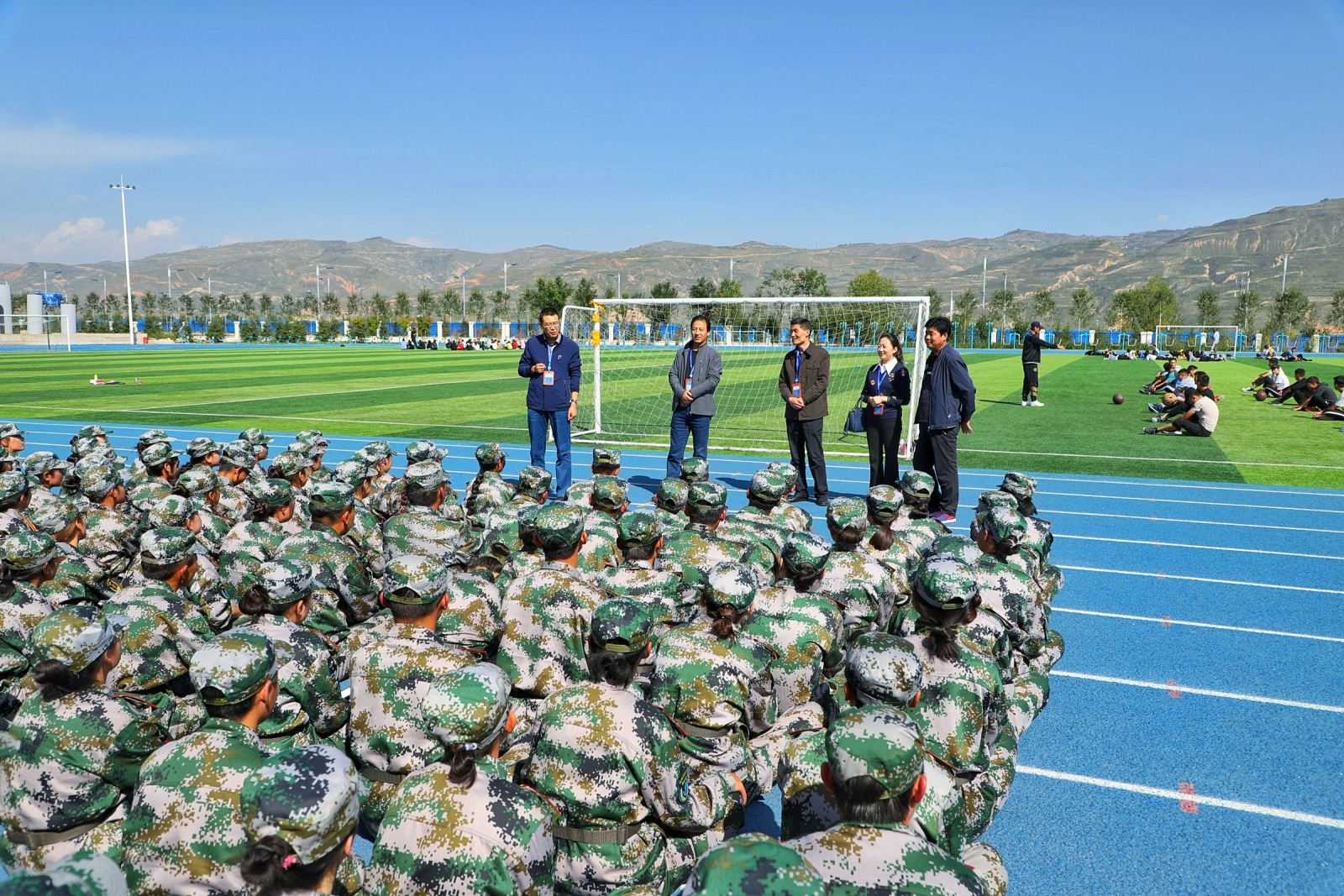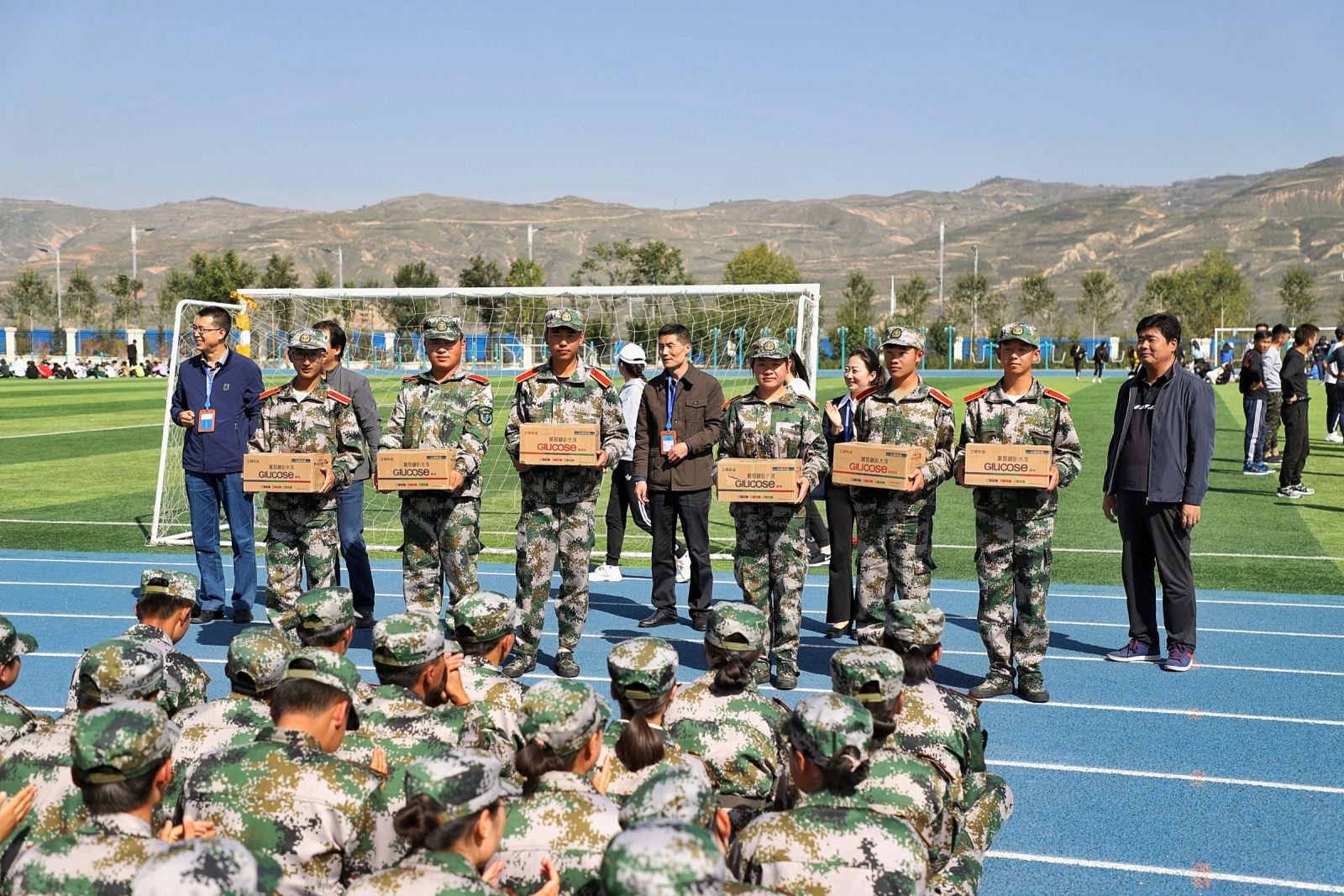 院领导首先与各位教官一一握手交谈,了解公司新生训练和管理情况。看到同学们队伍整齐、精神饱满,老师们向教官表达了真诚的谢意。在走访过程中,老师们给每个同学都发放了慰问品以表达对新生的关爱。每到一个班级,老师们都亲切地与新生交谈,仔细询问入学后的感受、对新环境的适应状况及在生活中遇到的困难,并勉励大家要认真上好军训这个大学第一课,向教官学习军人的优秀品质,继续保持积极向上的精神风貌,听从指挥,增强体质,砥砺意志和品格,为大学新征程和人生新起点奠定坚实的基础。除了送上关爱与祝福,老师们还特别强调了安全管理问题,提醒大家要不断提高安全防范意识,嘱咐新同学要遵守公司各项管理规定,确保平稳度过适应期,尽快投身于火热的老员工活中,早日锤炼成才。