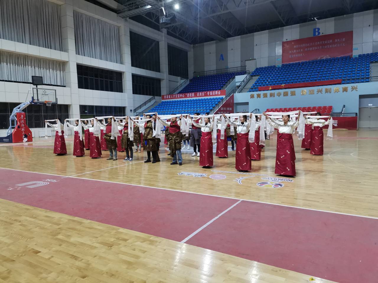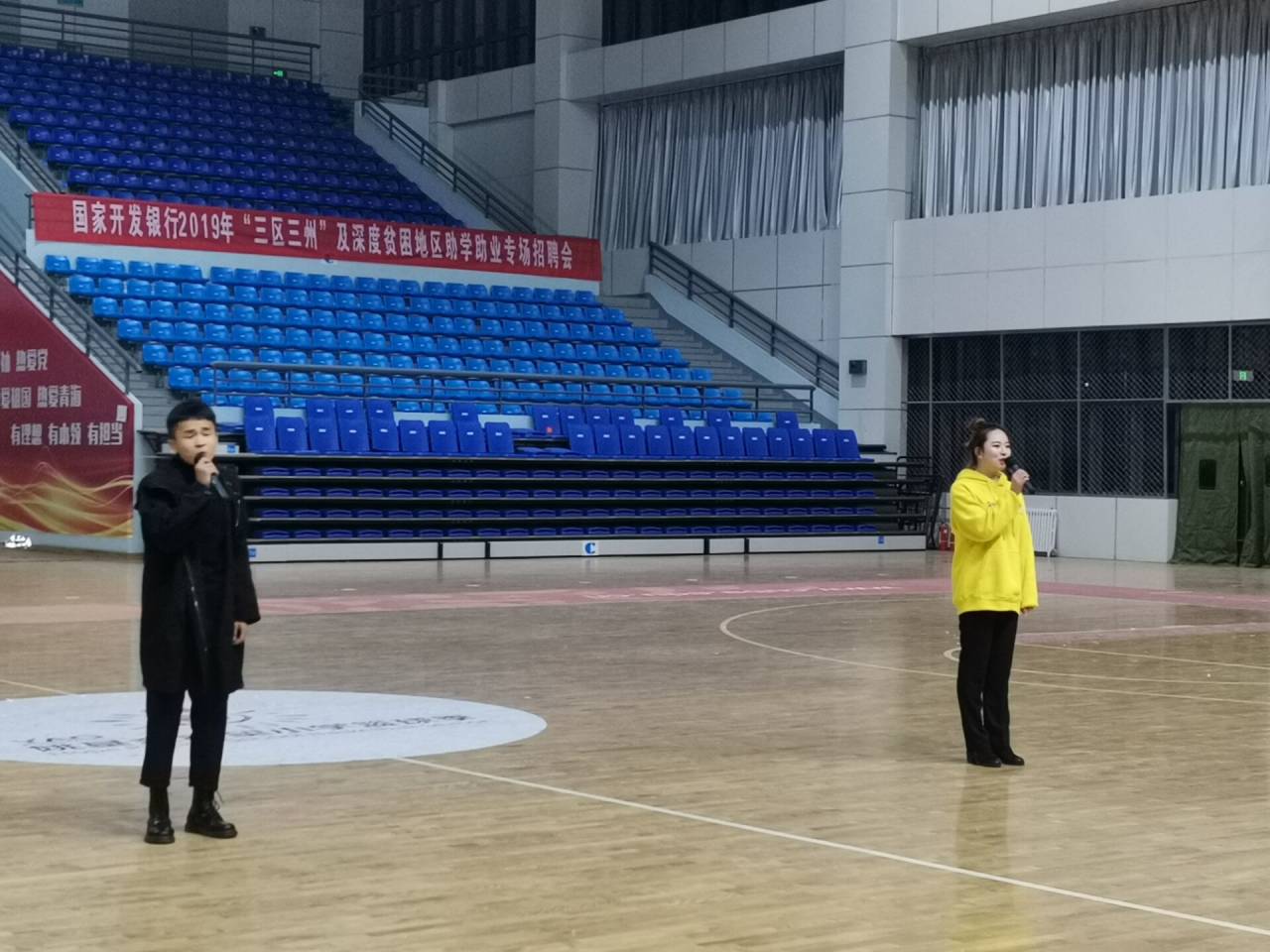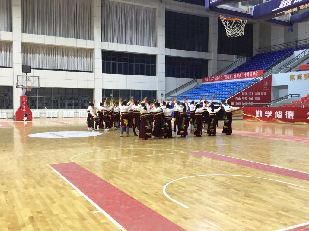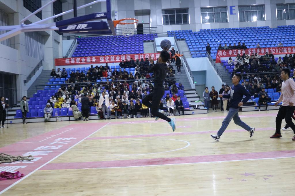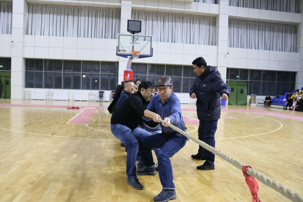 为了增强使新老生交流活动的趣味性,在文艺节目中间还穿插进行了拔河比赛、篮球赛等。在互动环节,老师和员工都积极组队参与,呼喊助威、热情高涨,现场热烈的气氛与室外寒冷的气温形成了鲜明的对比。
