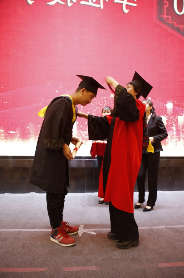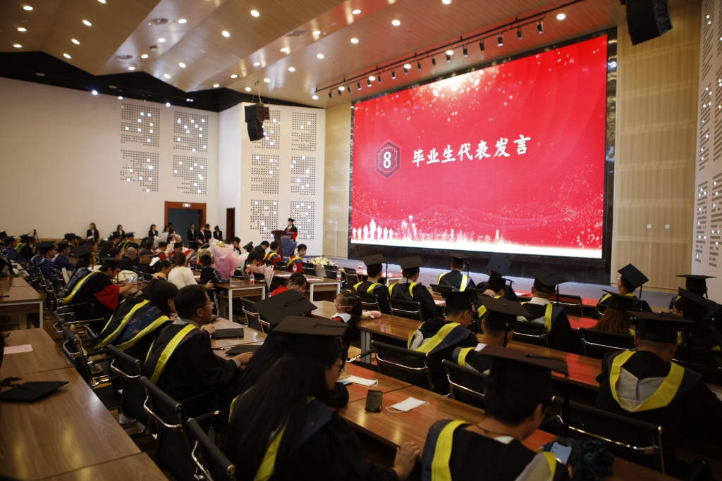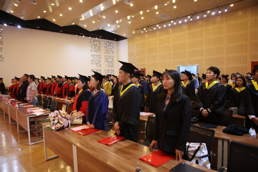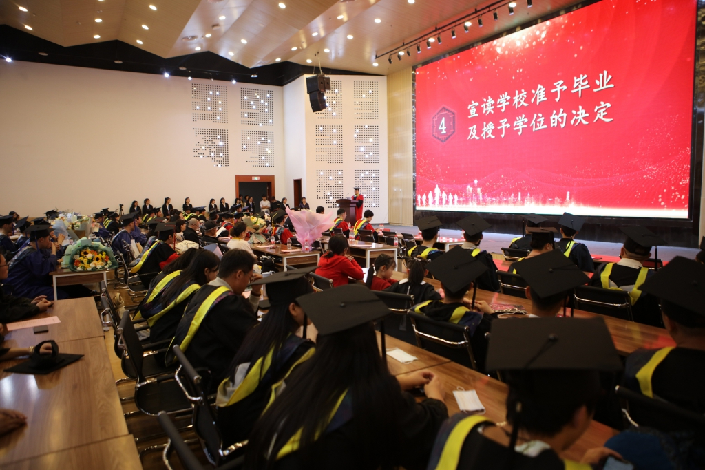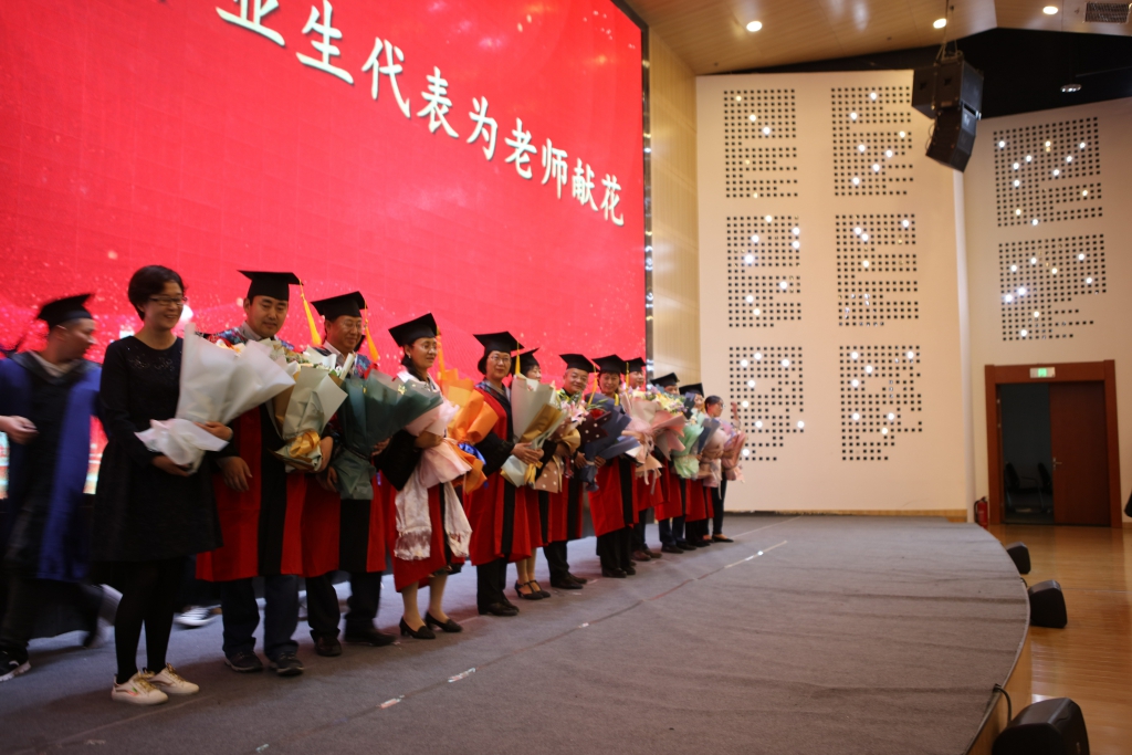 随后进行了学位授予仪式,由博士生导师杜秀娟、黄鹤鸣、李瑞三位教授分别为毕业生拨穗正冠,颁发证书。仪式后,在校生代表也为学长学姐们送上祝福,经典的旋律、朴实的话语、诚挚的情谊,深深地感动着在场的每一位师生。