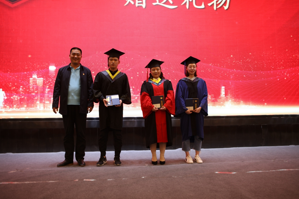 典礼上,副经理黄鹤鸣宣读了公司准予毕业及授予学位的决定。李发旭老师代表教师发表致辞,表达了对员工的关心和殷切期望。童英华、杨燕琳、刘怡凡分别代表博士、硕士和本科毕业生相继发言,他们各自总结了入校以来所学的知识,深切表达了对公司和老师的感激之情、对同学们的不舍之意,以及即将踏入社会的坚定信心,誓言用自己的努力和成功来感恩社会、回报母校。为了表达对毕业生的祝福,总支副书记曹玉林代表公司向毕业生赠送了毕业礼物。
