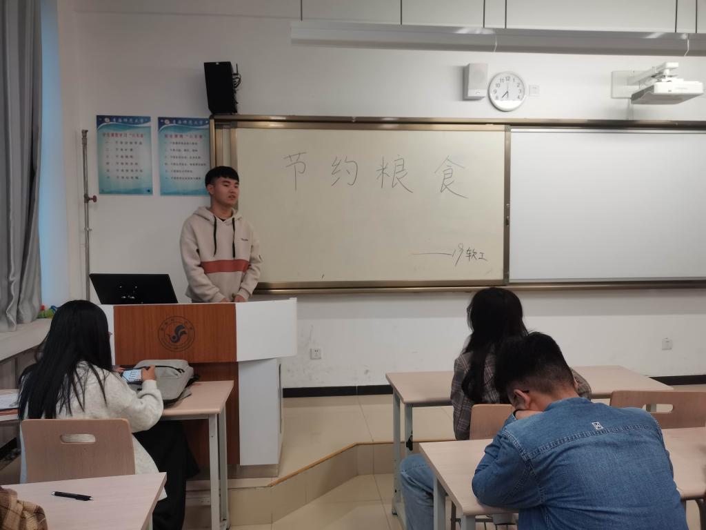 班会上,各班采用PPT讲解、观看视频、故事分享等方式围绕“舌尖上的浪费”、合理健康消费、节约校园建设等问题展开讨论。通过讨论,同学们反思了自己对待粮食的态度及日常生活中的细节,意识到自身存在的浪费行为。同学们表示,只有每个人提高认识,从自身做起,从细小入手,节约每一粒米、每一滴水、每一度电,杜绝点滴浪费,就会聚少成多,就能为节约型校园建设贡献一份力量。