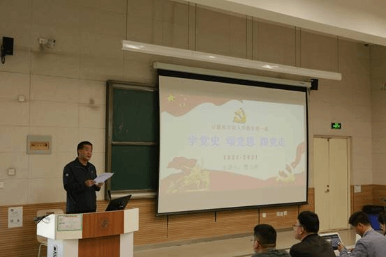见面会后,党总支书记曹玉林以《学党史 颂党恩 跟党走》为题给全体21级本科生上了入学教育第一课。他从没有共产党就没有新中国、没有共产党就没有社会主义中国、没有共产党就没有中国特色社会主义、党的百年光辉历程给我们的深刻启示等四个方面详细讲述了中国共产党的百年光辉历程和取得的辉煌成就,教育引导同学们进一步深化对党的创新理论的认识和理解,努力成为具有坚定信仰、远大理想且品德高尚、勤奋学习的老员工。