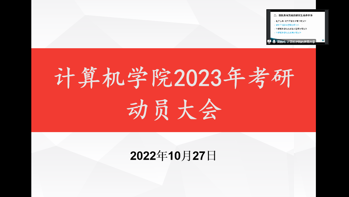 根据公司《关于开展“考研动员活动周”的通知》要求及公司工作部署,为帮助员工树立正确的就业观,进一步做好2023届毕业生就业工作,激发考研动力、明确考研目标,制定科学备考规划,10月27日,公司举行2023年考研线上动员大会,全体2019级、2020级员工参加。