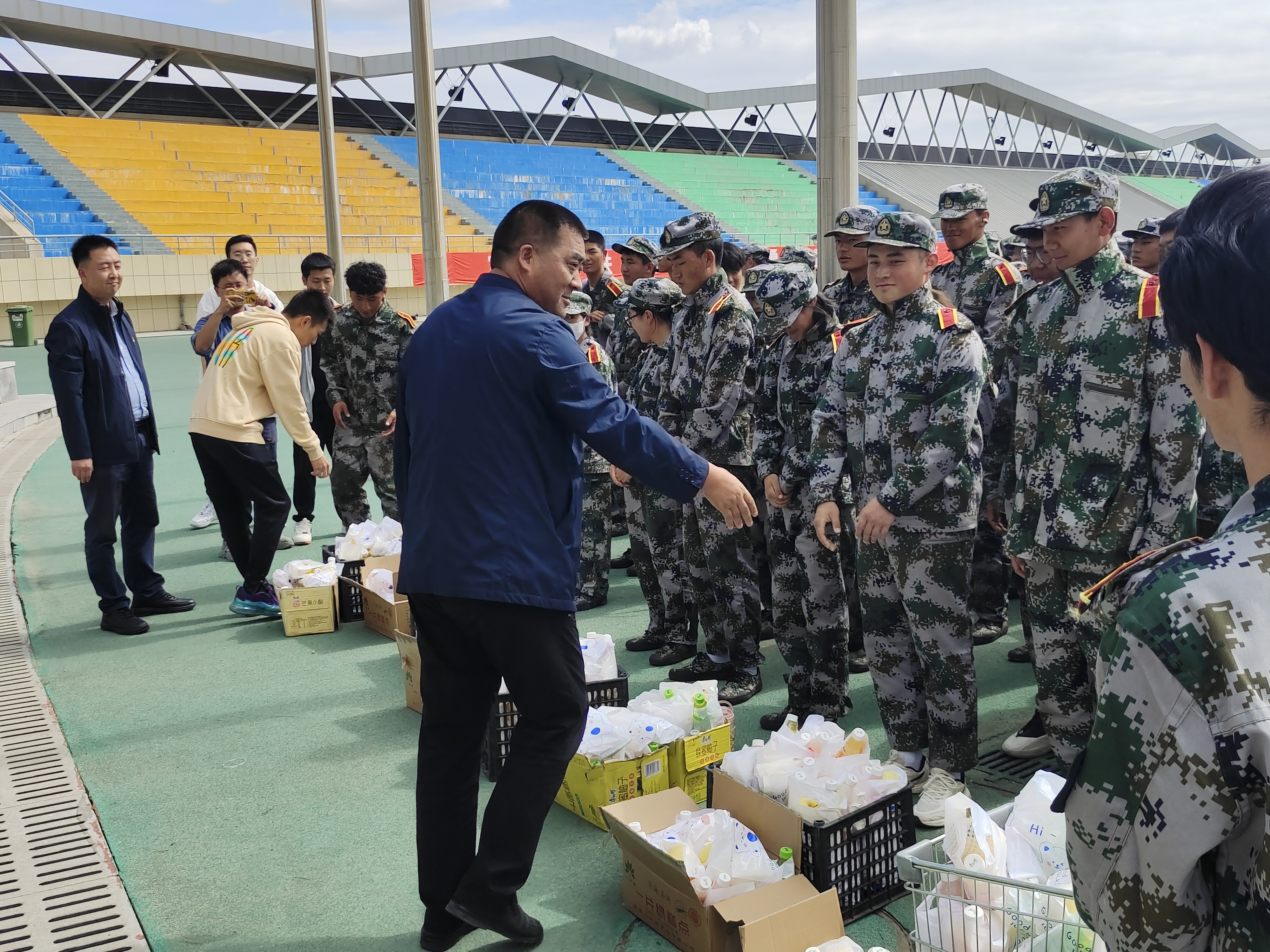 “中秋来临喜相逢,清风送来意相从”,在中秋、国庆双节来临之际,为增强2023级新同学入校之后的归属感,感受beat365在线官网入口大家庭家人般的亲情与温暖,9月22日下午,公司党总支书记曹玉林、副经理卢文带领全体辅导员、员工会部分干部来到军训场地看望慰问2023级全体军训新同学,向全体参训同学送上双节诚挚的祝福。
