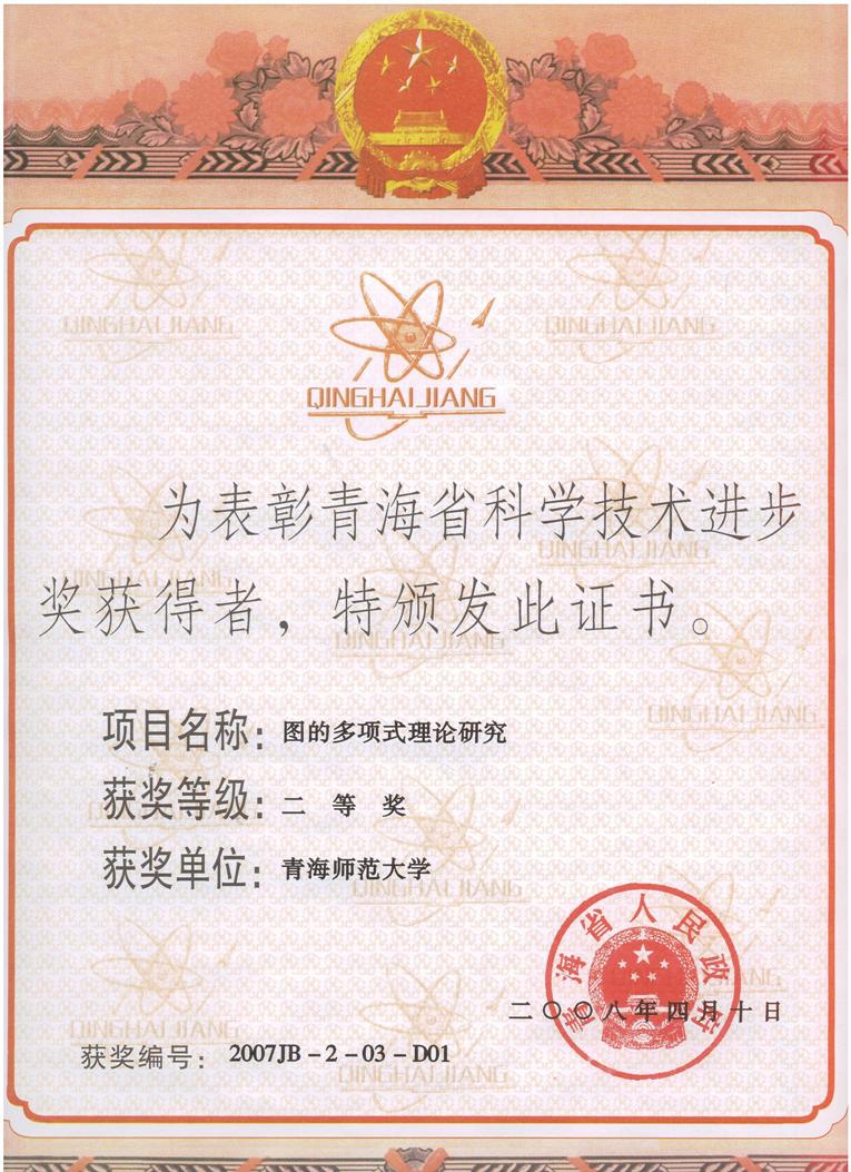 本方向主持教育部长江学者与创新团队计划项目1项、973前期研究专项1项、国家自然科学基金项目6项、省部级项目5项,获青海省科技进步二等奖1项,主持项目经费近700万元;发表学术论文80余篇,其中SCI/EI收录40余篇,《中国科学》2篇,有3篇论文分别获青海省自然科学优秀论文一等奖1项,二等奖1项,三等奖1项。主要成员在网络科学和自然语言研究方面取得了丰硕的成果,解决了著名学者Brenti、Dong、Gutman、Koh、Liu和Teo等在《Discrete Math.》等国际重要刊物上提出的一些开问题和猜测,其研究结果被Dong、Koh(新加坡)和Teo(新西兰)的专著引用,此专著的第4章和第11章有一部分专门介绍其研究方法和结果;40余篇论文被他人多次引用,22篇被SCI检索的文章多次引用,其中3篇与网络动力学和网络传播理论相关论文被国际著名学术出版社Elsevier 出版社按季度评为最热门的二十五篇文章之一,其研究方法和结果得到国内外同行专家和学者的认可。